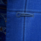 Every detail of this tailored suit reflects meticulous craftsmanship and thoughtful customization. The notch lapels provide a classic, versatile silhouette that works seamlessly with various shirt and tie combinations. Hand pick stitching along the lapels and pocket edges demonstrates traditional tailoring expertise while adding subtle texture and visual appeal. The classic straight flap pockets maintain clean lines while providing practical functionality. Medium blue horn buttons complement the suit's color palette perfectly, while the contrast accent buttonholes in dark blue tones add sophisticated finishing touches that distinguish this piece as truly bespoke work.